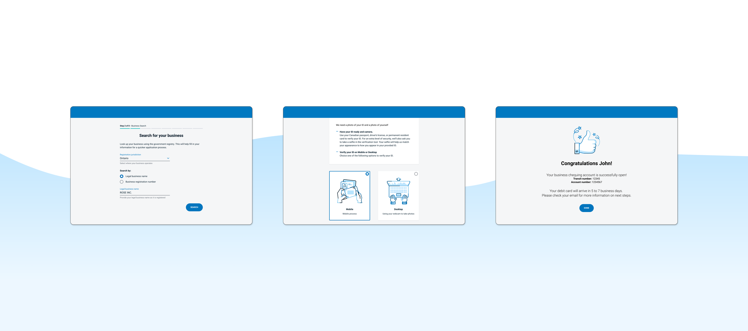I led the design initiative for a self-serve business banking account opening platform. By simplifying intricate financial processes and optimizing the account opening journey, I created an intuitive experience tailored for small business owners. Through thorough user research and strategic interface design, the platform empowers users to open business banking accounts seamlessly, enhancing clarity and efficiency at every step.