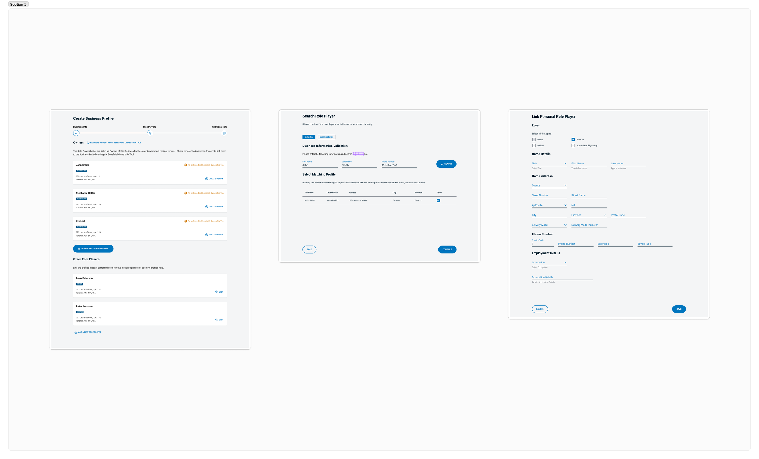 In light of the extensive data input demanded by this process, we leveraged a user journey map to meticulously identify its core steps and main components. Through this methodical approach, we pinpointed key opportunities for optimization, including the integration of government registry connectivity via API. Additionally, we prioritized designing a comprehensive overview of business role players for user review, ensuring clarity and efficiency throughout the onboarding journey.